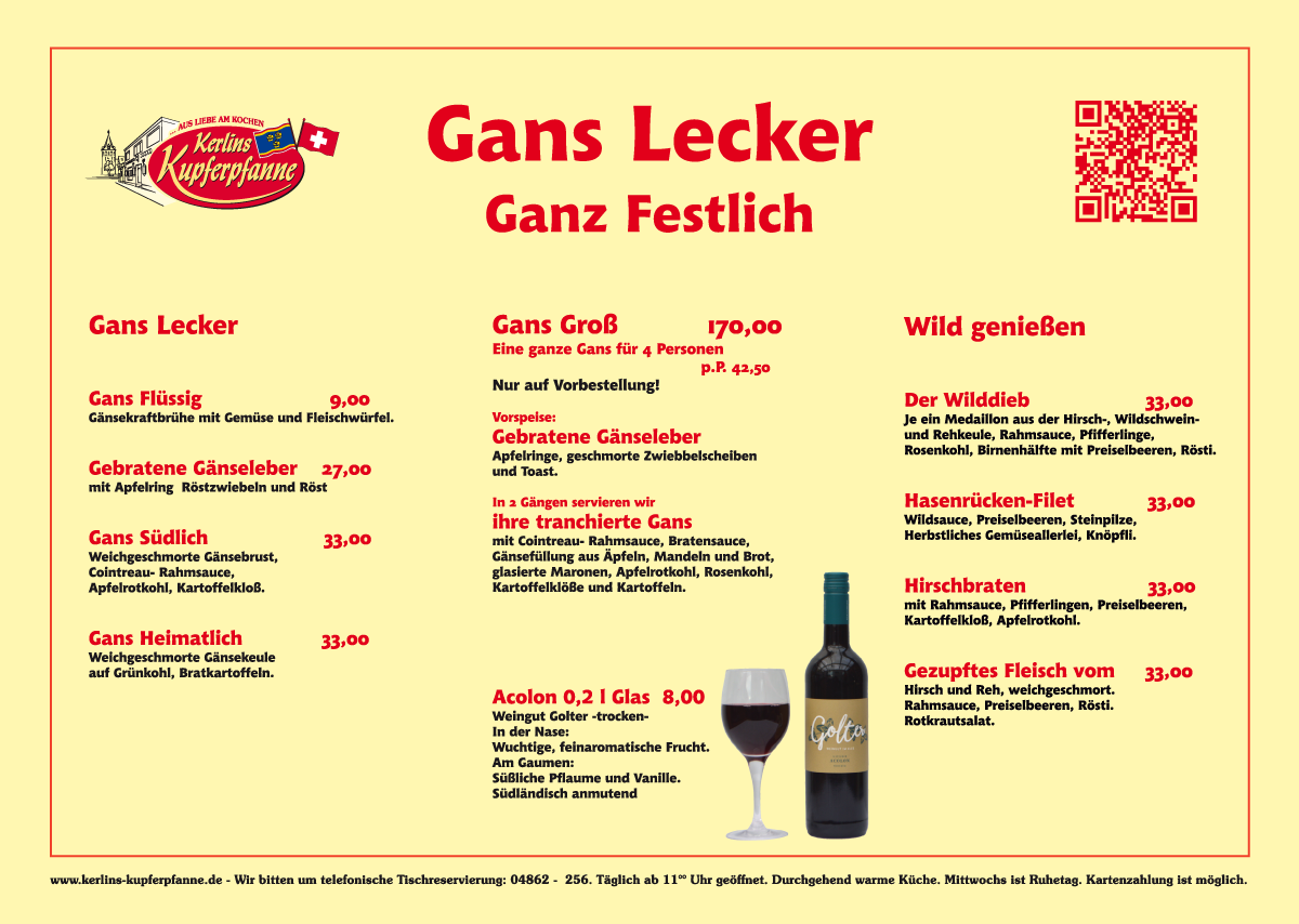 In der Weihnachtszeit heißt die Karte "Gans festlich“.