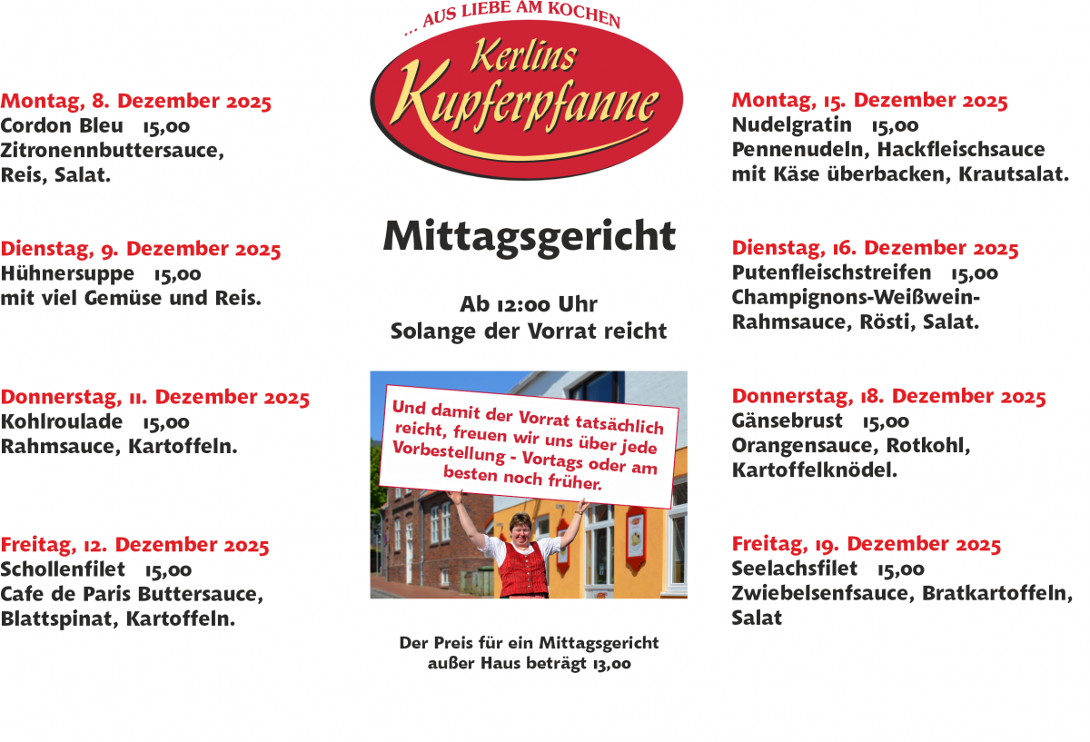 Melden Sie sich für unseren Newsletter an und Sie bekommen den Mittagstischplan alle 14 Tage per Email geschickt!