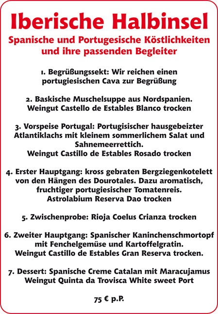 In regelmäßigen Abständen gibt es in Kerlins Kupferpfanne ein Weintasting. Wir unterhalten Sie mit gutem Essen und tollen Weinen, kurzweiligen Geschichten und Anekdoten rund um unser Thema. Serviert wird ein mehrgängiges Menü mit kleinen, erlesenen Speisen, dazu korrespondierende Weine, passend zum jeweiligen Thema.