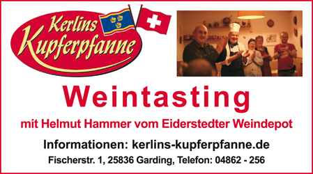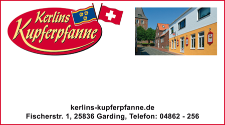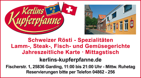 Reservierung erwünscht: Tel. 04862-256, kerlins-kupferpfanne.de
