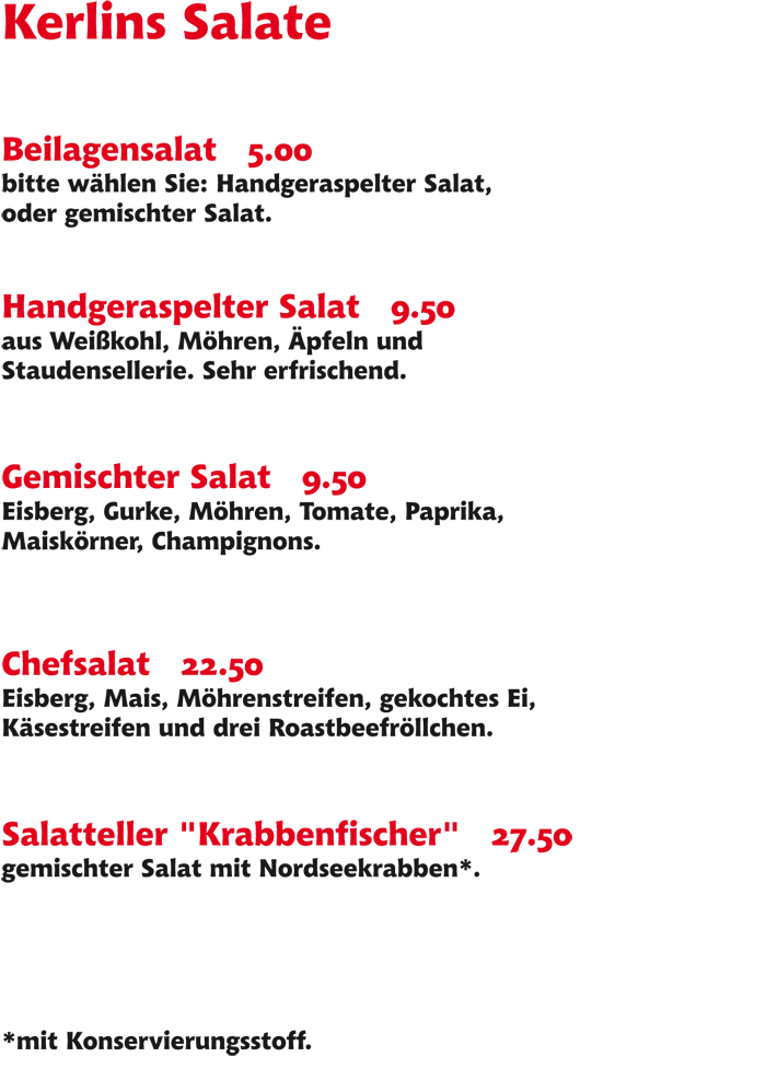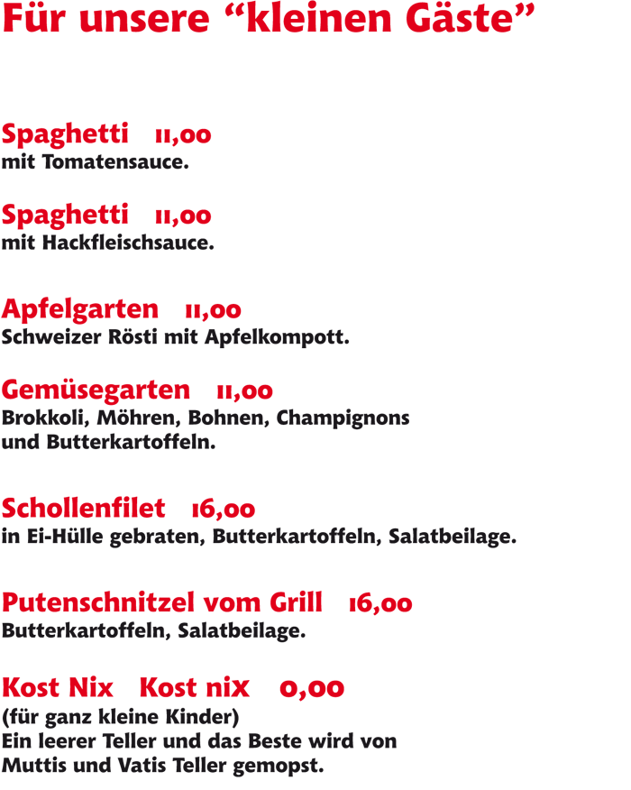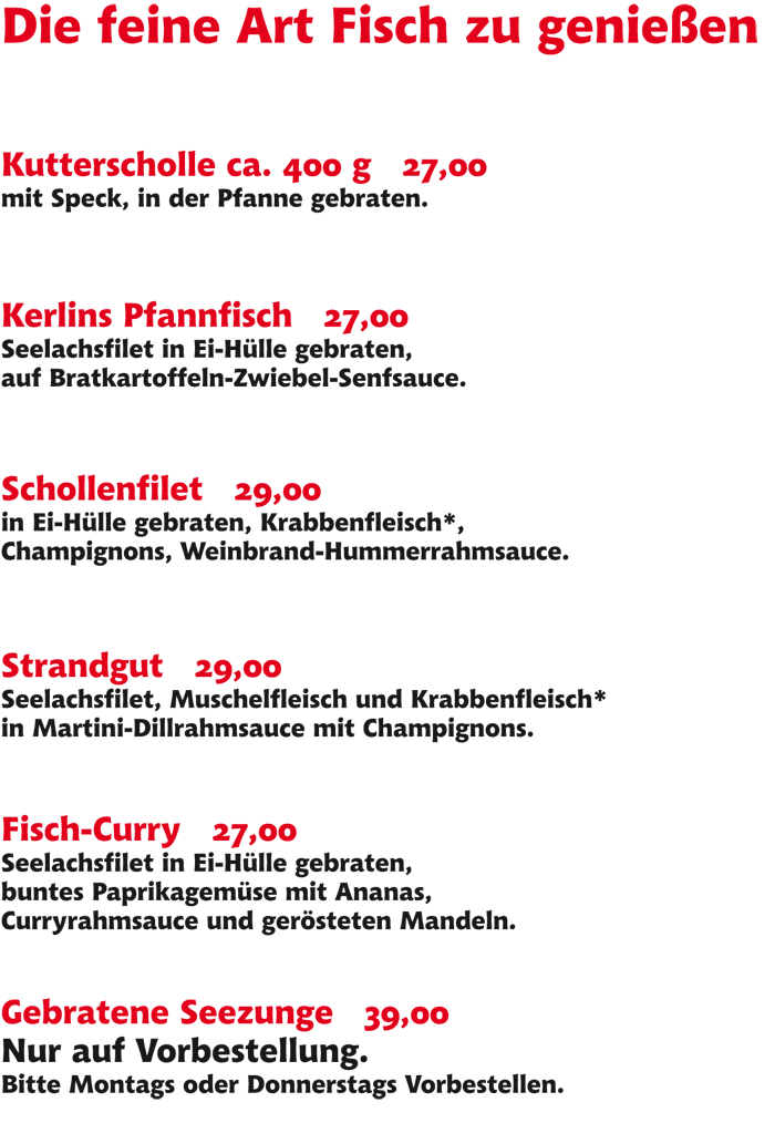 Reservierungen bitte nur per Telefon: 04862-256.
