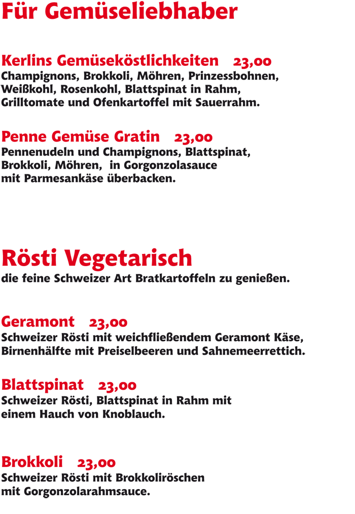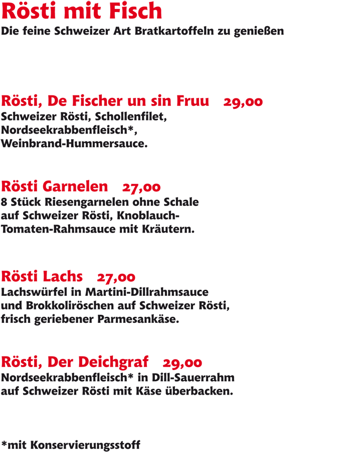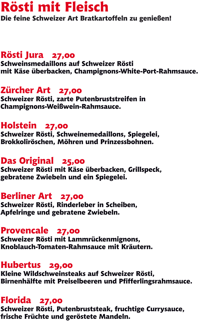 Rösti-Gerichte und á-la-carte-Essen