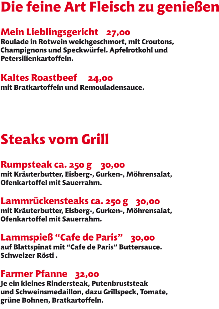 Speisekarte | Jahreszeitliche Karte | Mittagstischkarte | Kaffee & Süßes | Getränke