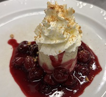 6. Dessert: Maronenparfait mit Weichselkompott und Sahnehäubchen